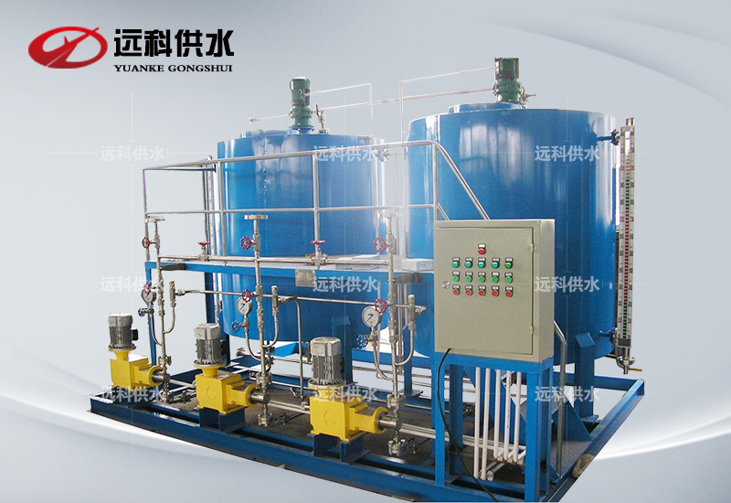 為達到最佳效果,在工況變化的情況下,對所加化學藥劑量自動跟蹤調節控制加藥速度,因此在這種裝置中,BJF智能型全自動加藥設備結構簡單、安裝方便。主要由計量箱(藥劑貯罐)、計量泵加藥泵)、自動控制系統、連接管路等組成。除部分加藥管路、取樣管路和加藥濃度檢測儀表外,這些設備一般都集中安裝在一個加藥間內,自動加藥裝置將計量箱、計量泵、自動控制系統一體化,即安裝在一個底座上。